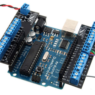 The Arduino board exposes most of the microcontroller's I/O pins for use by other circuits. The Diecimila,[a] Duemilanove,[b] and current Uno[c] provide 14 digital I/O pins, six of which can produce pulse-width modulated signals, and six analog inputs, which can also be used as six digital I/O pins. These pins are on the top of the board, via female 0.1-inch (2.54 mm) headers. Several plug-in application shields are also commercially available. The Arduino Nano, and Arduino-compatible Bare Bones Board[31] and Boarduino[32] boards may provide male header pins on the underside of the board that can plug into solderless breadboards.